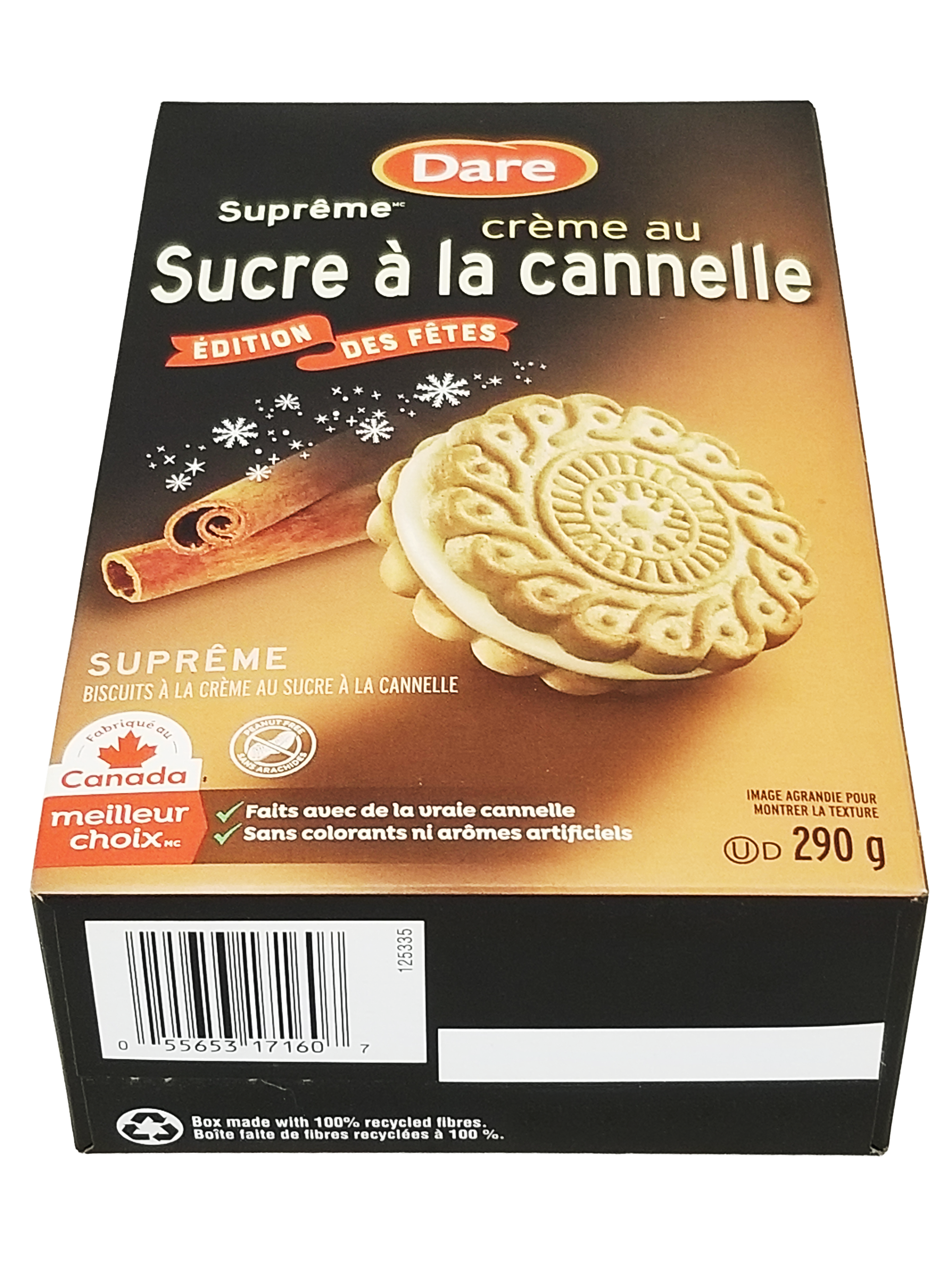 Celebrate the season with the warm, cozy taste of snickerdoodle.Dare Ultimate Snickerdoodle Holiday Sandwich Cookies bring festive flavor to your holiday gatherings with buttery cookies and smooth cinnamon creme filling.