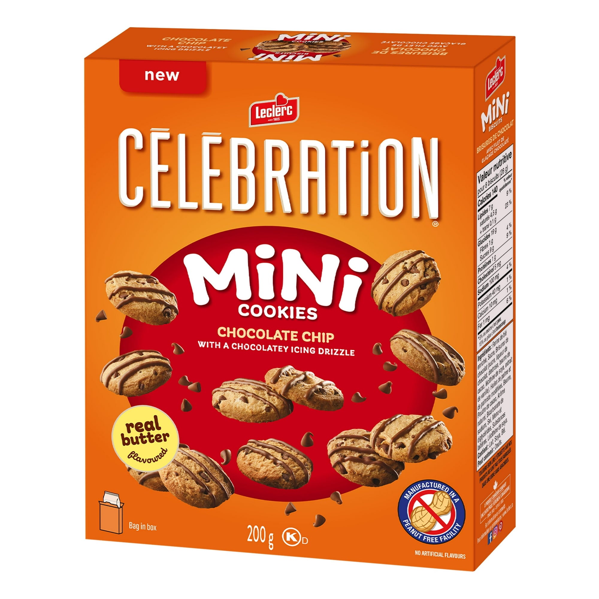 Mini Cookies, Big Delight! Leclerc Celebration Chocolate Chip Mini Cookies delight with a buttery taste, miniature chocolate chips and a delicate chocolate icing drizzle. They’ll satisfy your snack cravings and bring you moments of pure joy, one bite at a time.