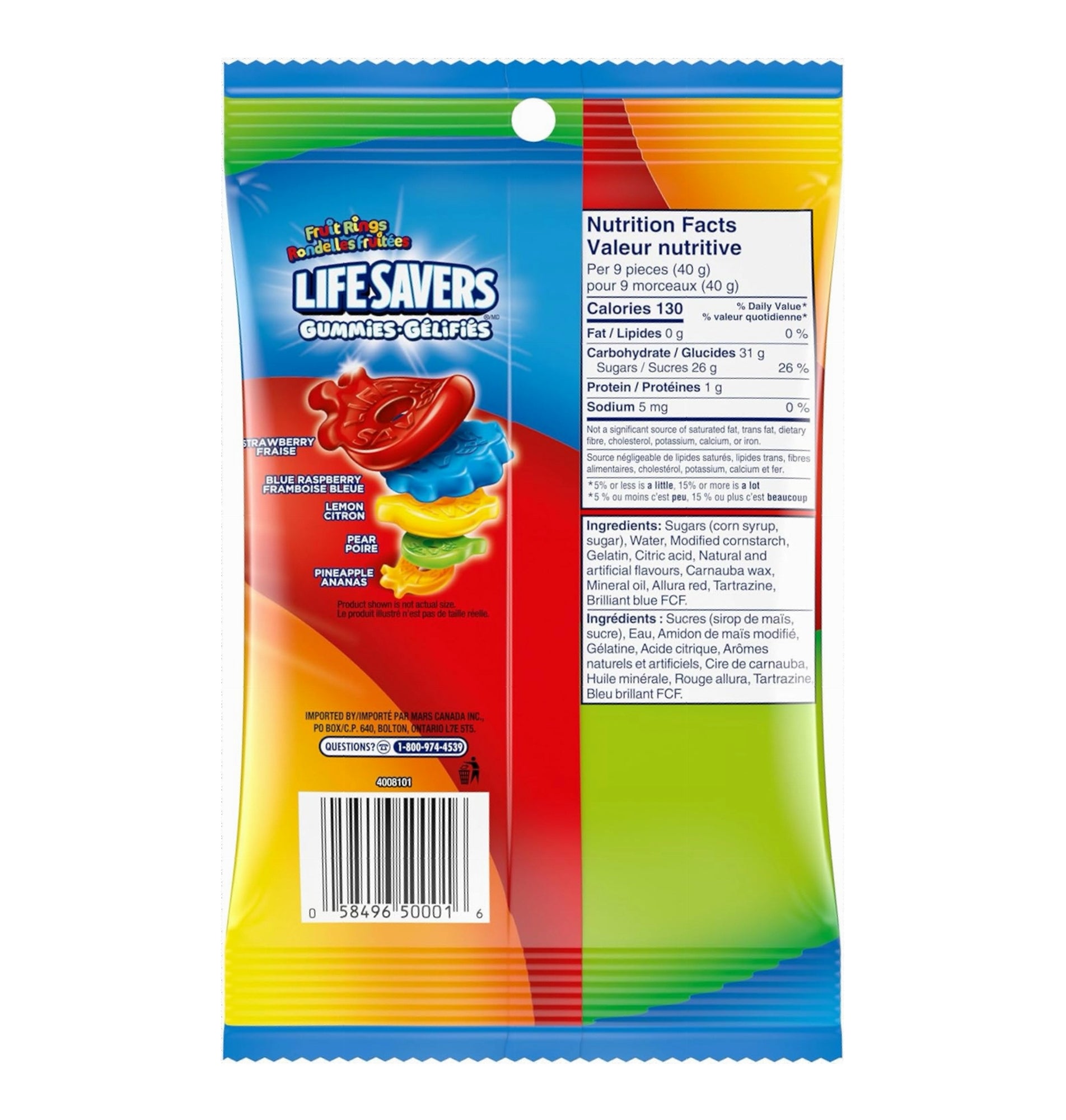 | Life Savers Fruit Rings Gummy Candy | 1 Bag | 180g / 6.3 oz |